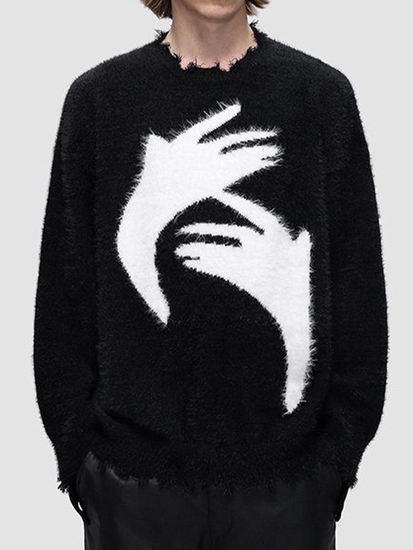 Vintage Portrait Print Splice Crew Neck Sweatshirt