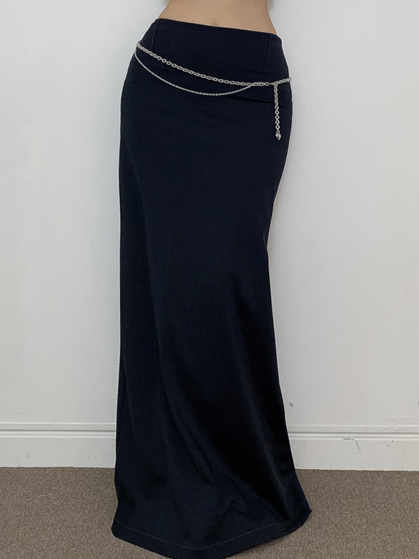 Knitted Slim-Fit Solid Color One Piece Maxi Skirts