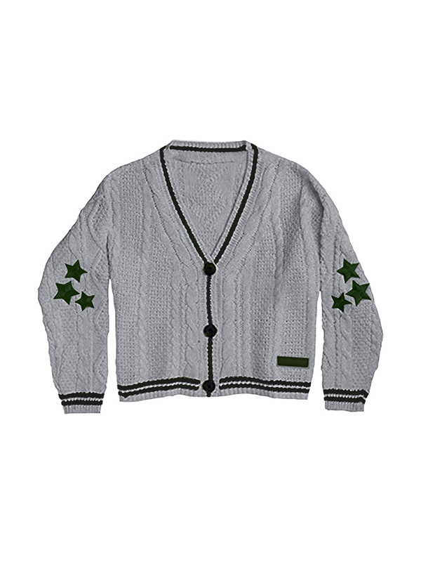 Vintage Print Lapel Neck Zip Up Long Sleeve Knit