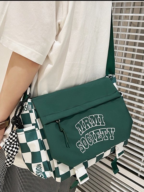 Buckle Strap Checkered Nylon Crossbody Bag