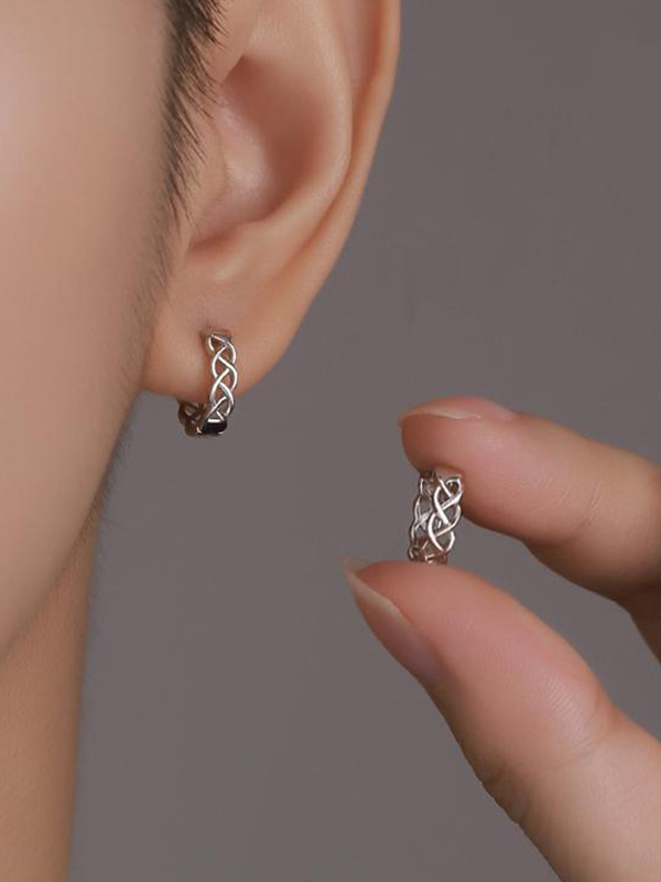 Men’s Hollow Out Woven Styling Hoop Earring