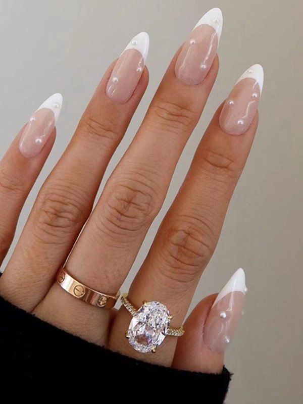 24pcs Faux Pearl Decor White Press On Nails