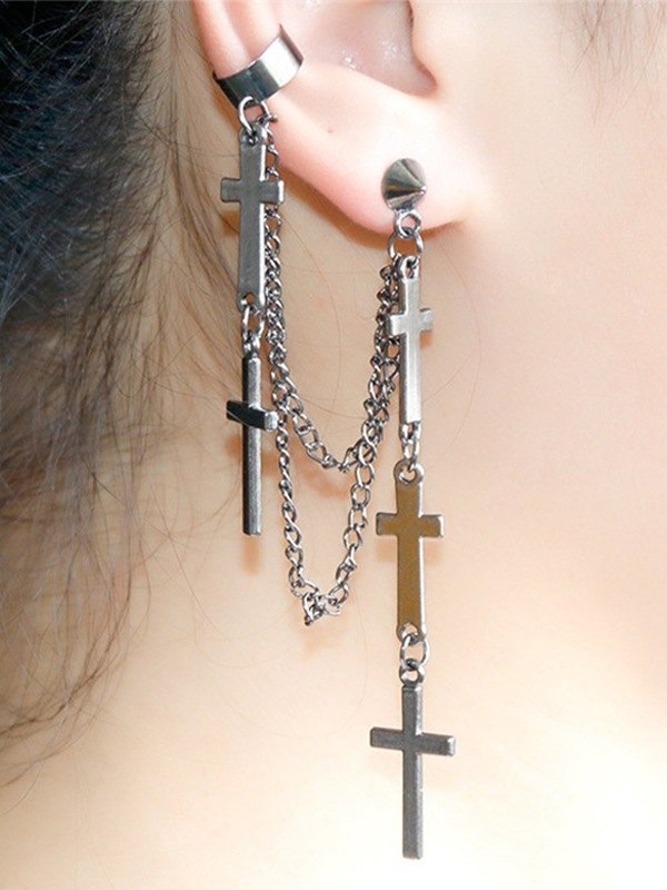 Chain Embellished Cross Drop Earring