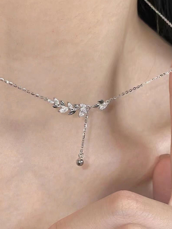 Silver Rhinestone Ear of Wheat Charm Necklace