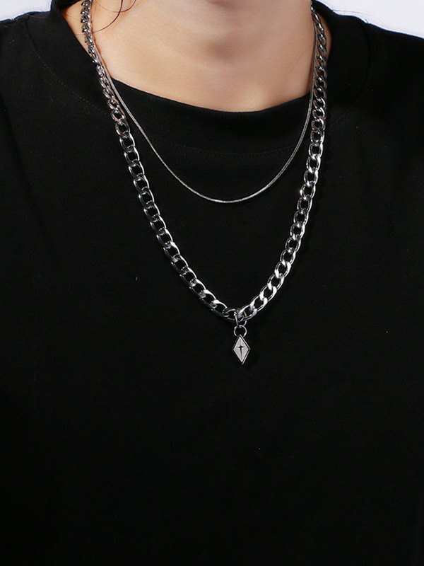 Men’s Silver Layered Link Chain Necklace