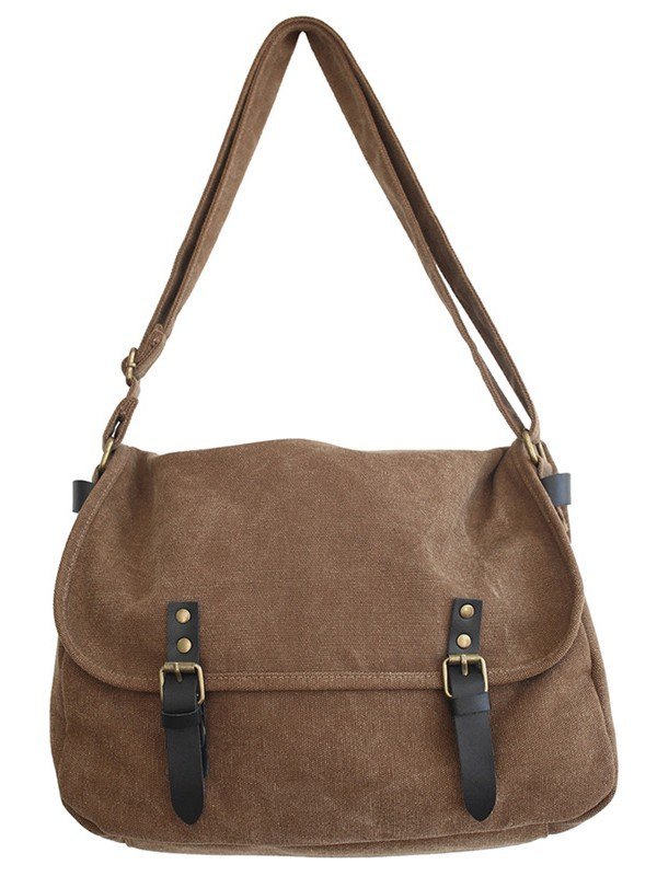 Buckle Strap Large Canvas Messenger Bag