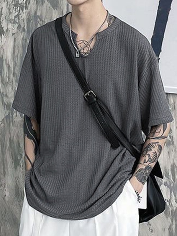Men’s Solid Mesh Notched Neck Short Sleeve Tee