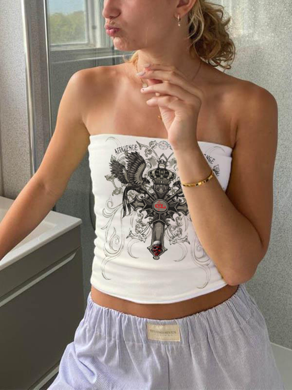 Fluffy Patchwork Chest-Shaped Bow Bandeau Top