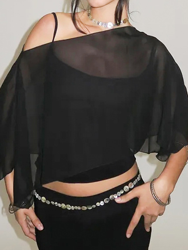 Lace Mesh Splice Lettuce Hem Bandeau Top