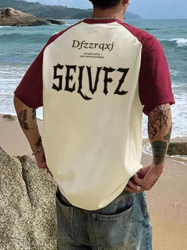 Men’s Letter Print Raglan Half Sleeve Short Sleeve Tee