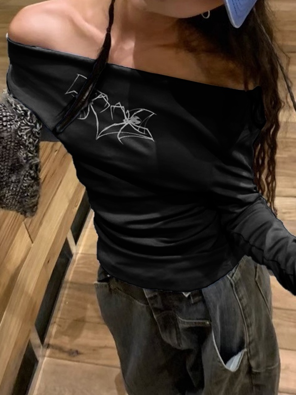 Little Devil Dark Style Spider Print Print Short Sleeves