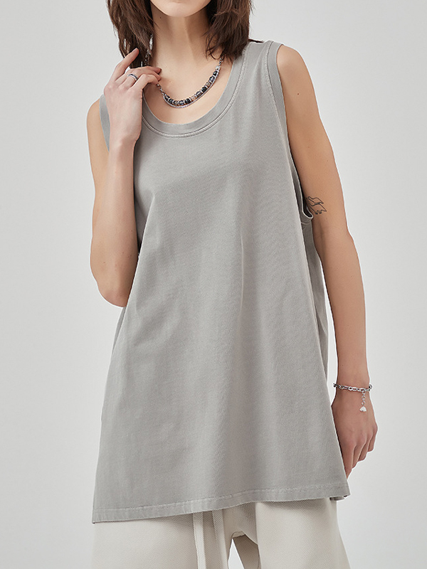 Washed Distressed Hem Slit Tank Top