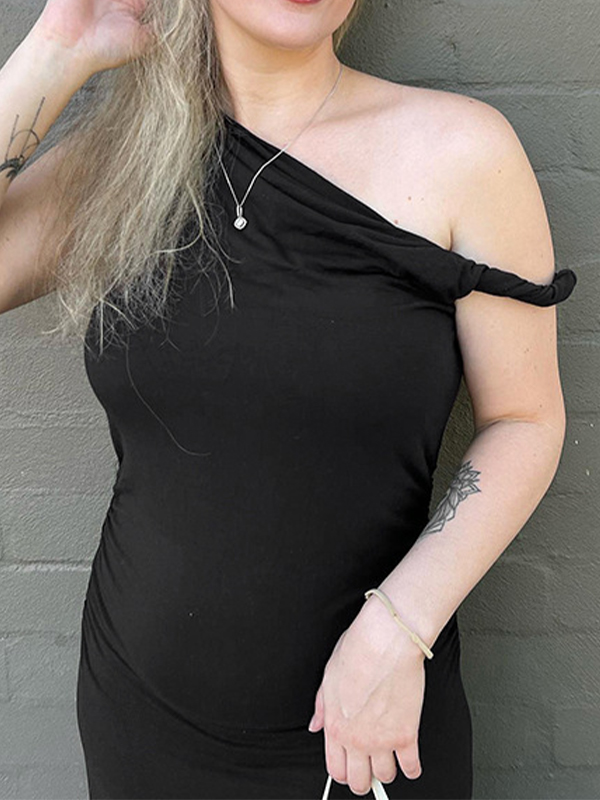 Solid One Shoulder Pleated Asymmetric Tank Top