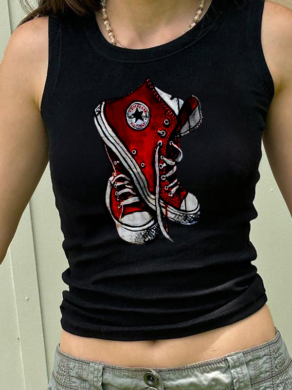 Shoes Printed Crewneck Slim Fit Tank Top