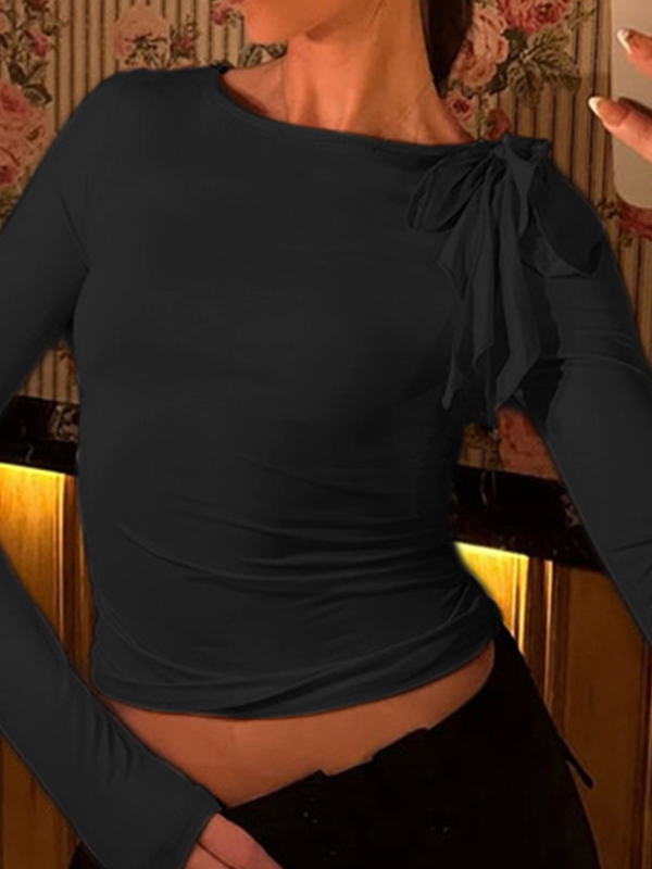Letter Print One Shoulder Thin Long Sleeve Tee