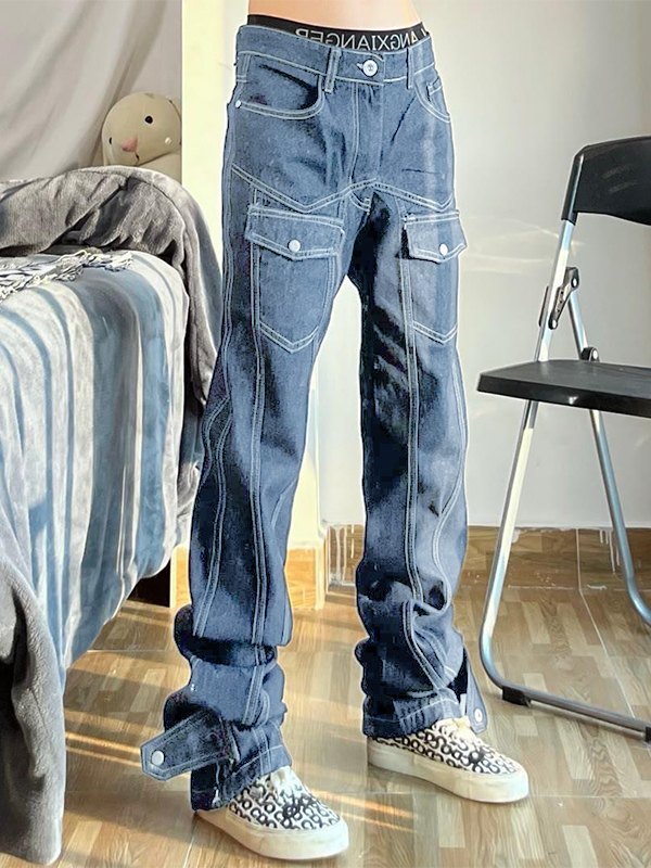 High Street Vintage Multi-Pocket Loose Jeans