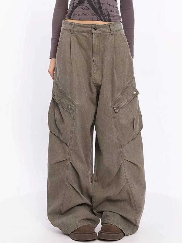 Washed Pleated Pockets Boyfriend Jeans