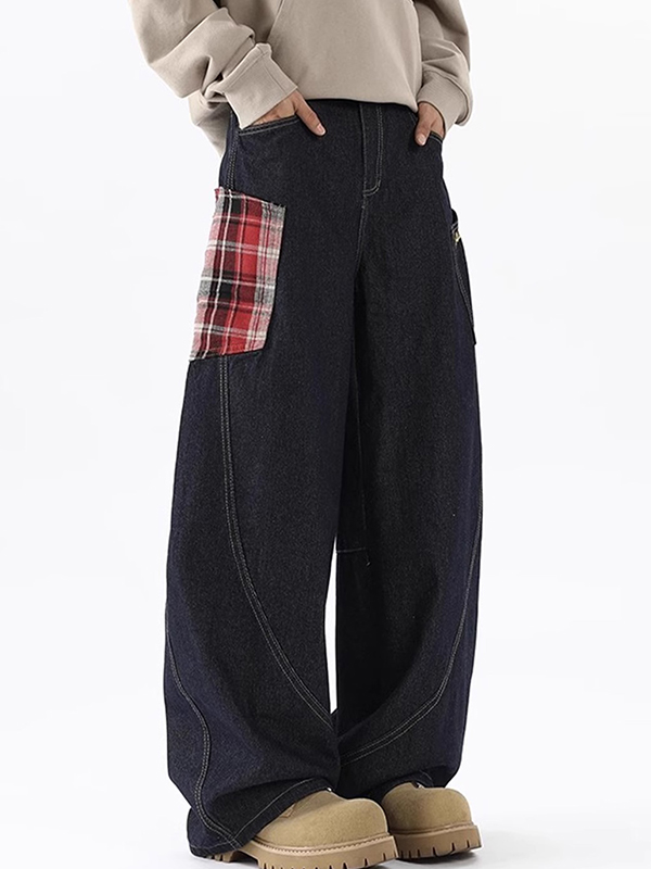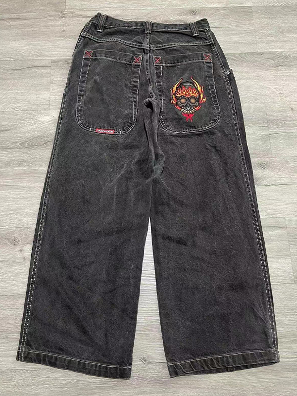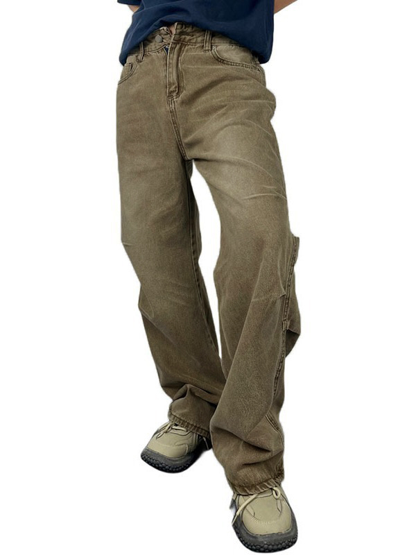 American Retro Heavy Industry Washed Bamboo Pattern Loose Jeans