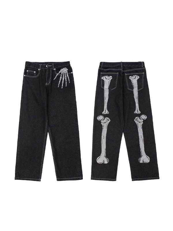 Men’s Skeleton Print Stitch Detail Loose Jeans