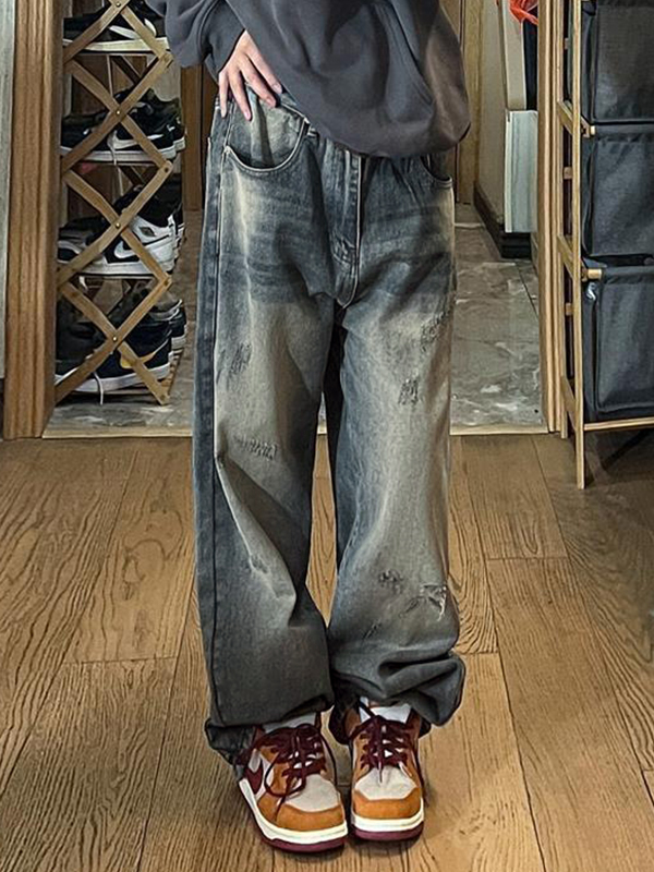 Retro Distressed Washed Feet Loose Jeans