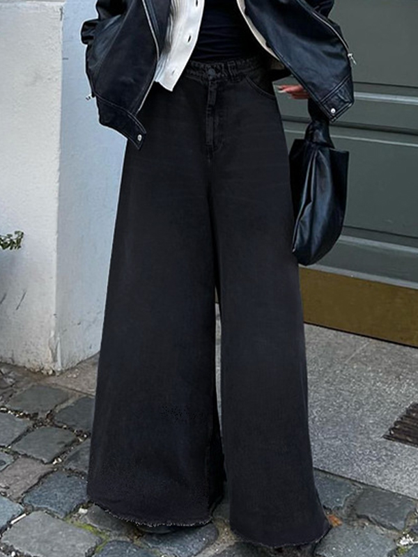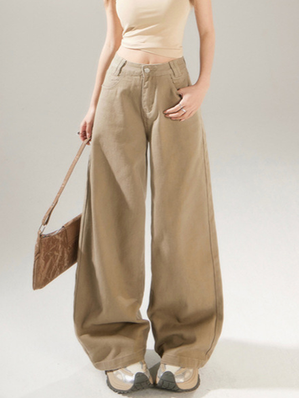 Simple Mid-High Waist Solid Color Loose Jeans
