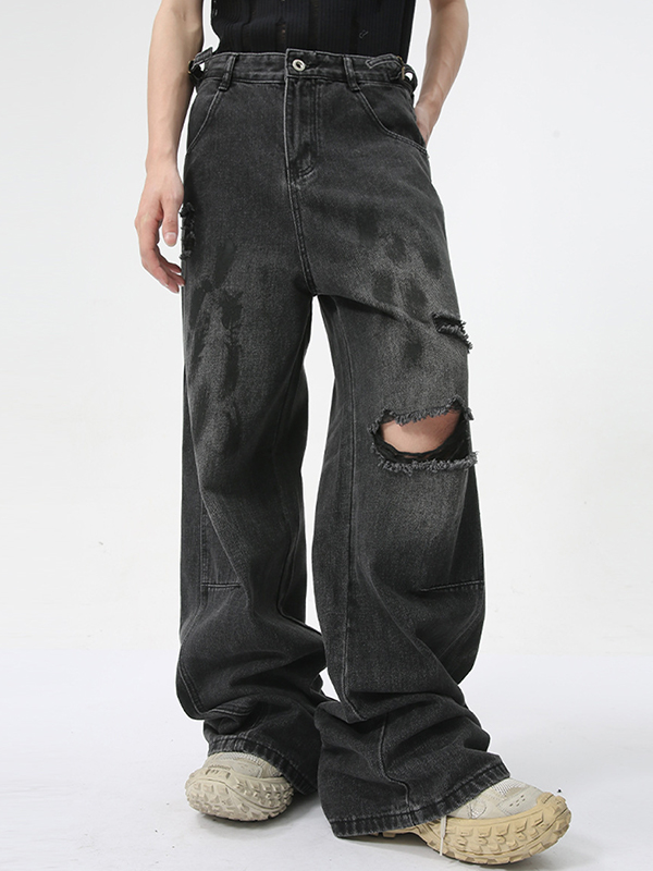 Street Distressed Holes Loose Jeans