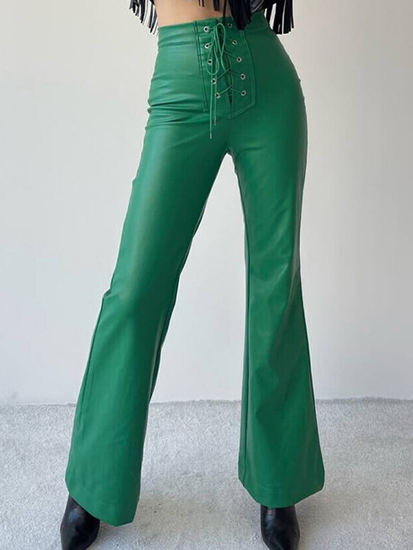 Solid Color Leather Pants