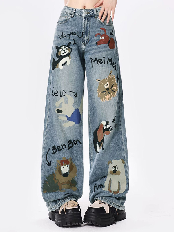 Graffiti Print American High Waist Loose Jeans Boyfriend Jeans