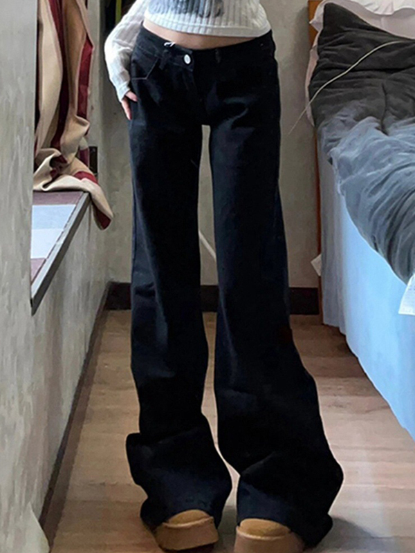 Hot Girl Low Waist Black Wide Legs Flare Jeans