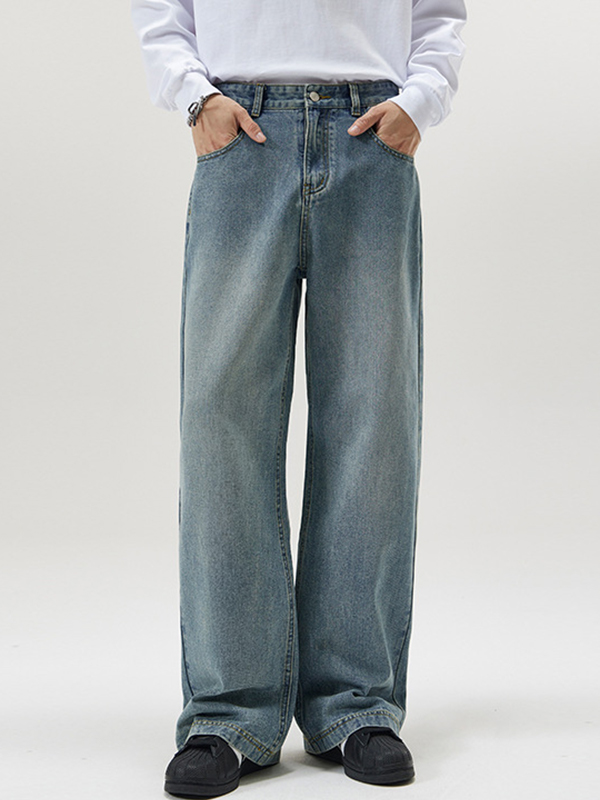Men’s Vintage Wash Distressed Loose Jeans