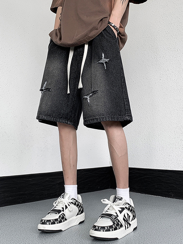 Men’s Irregular Cartoon Bear Print Drawstring Shorts