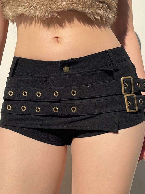 Vintage Washed Lightning Bolt Pattern Denim Shorts