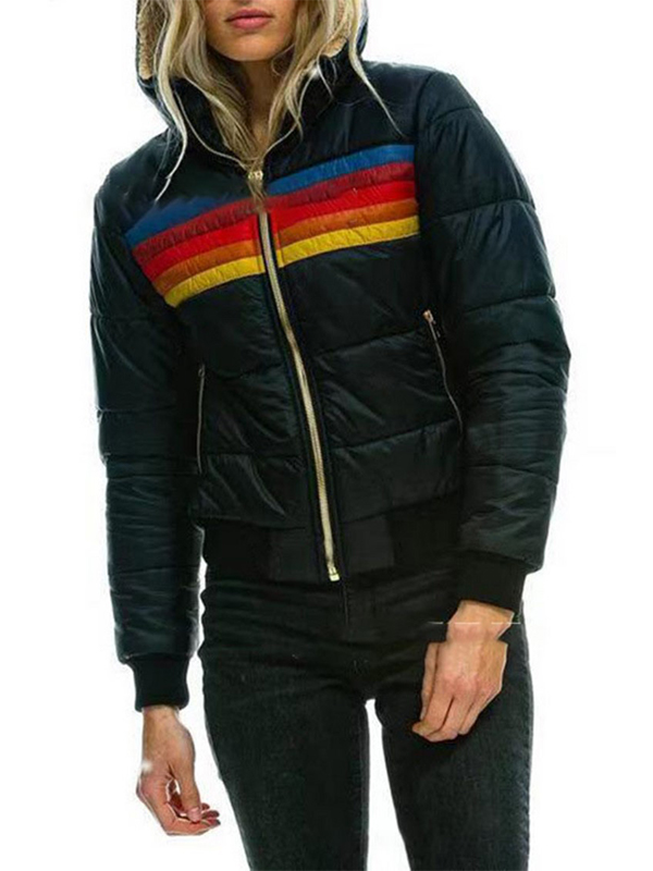 Colorful Splice Hooded Short Jacket
