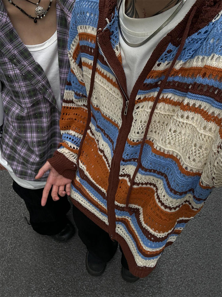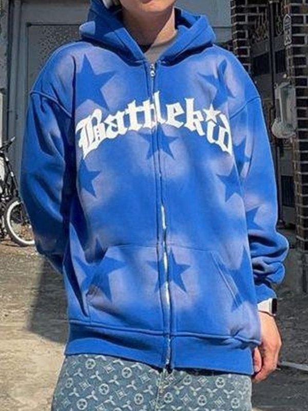 Blurred Graphic Print Zip Up Oversized Hoodie