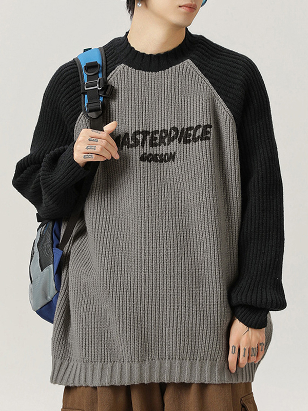 Raglan Sleeves With Contrasting Patchwork Design Sweater