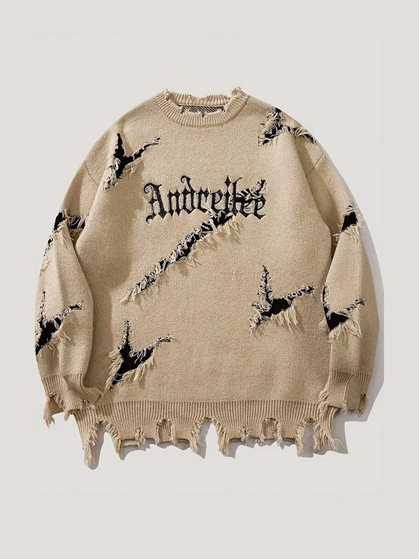 Men’s Street Abstract Jacquard Ripped Sweater
