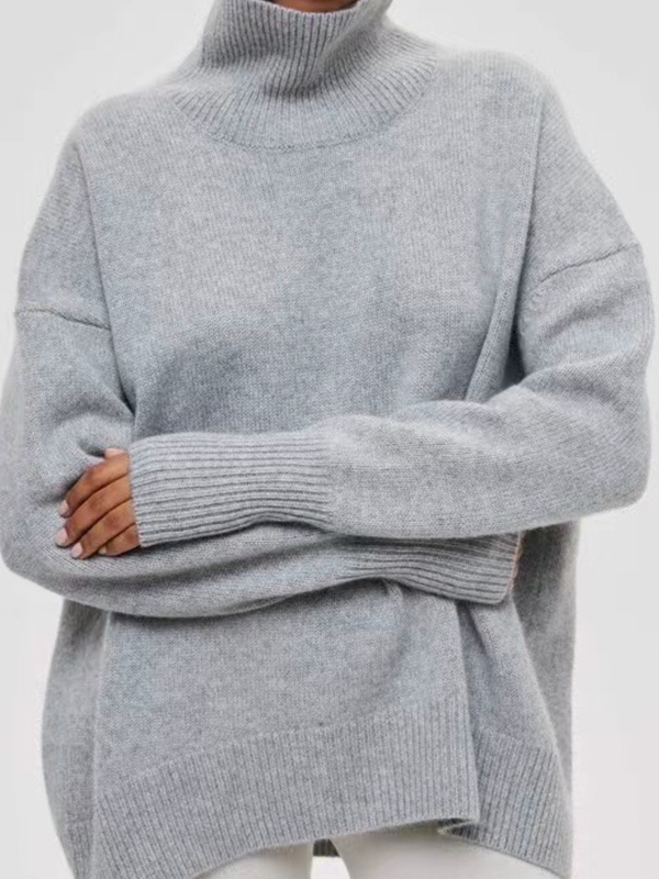 Solid High Neck Loose Sweater