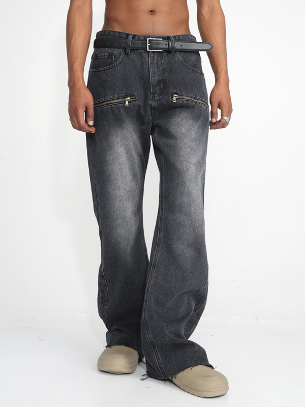 Men’s Vintage Wash Zipper Decor Loose Jeans
