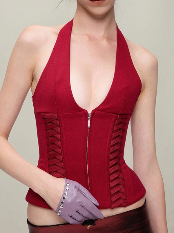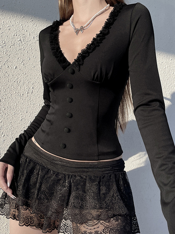 Lace Splice Bow Tie Front Square Neck Long Sleeve Knit