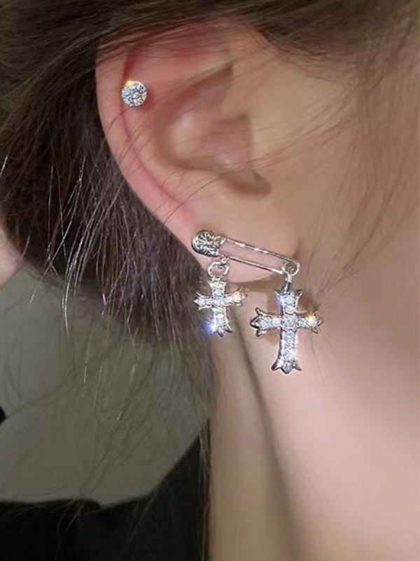Contrast Color Cross Jacquard Rolled Design Long Sleeve Knit
