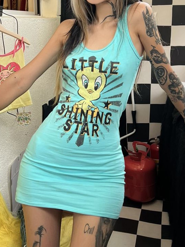 Cartoon Print Stretchy Wrap Hip Mini Dress