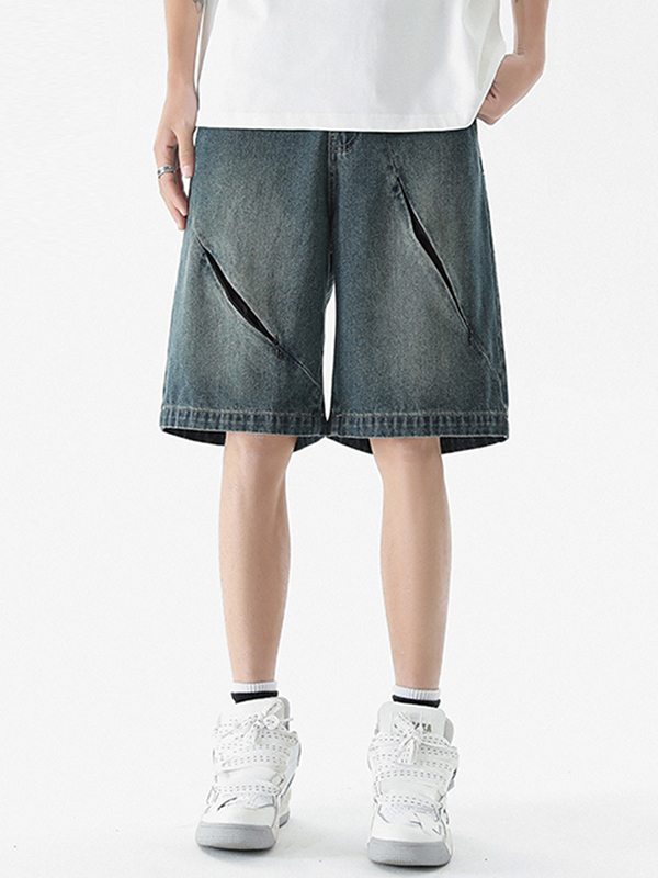 Men’S Loose Zipper Straight Denim Shorts