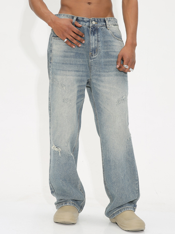 Retro Distressed Blue Loose Jeans