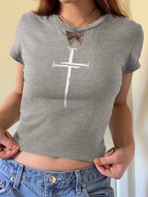 Cross Print Slim Short Sleeve Tee