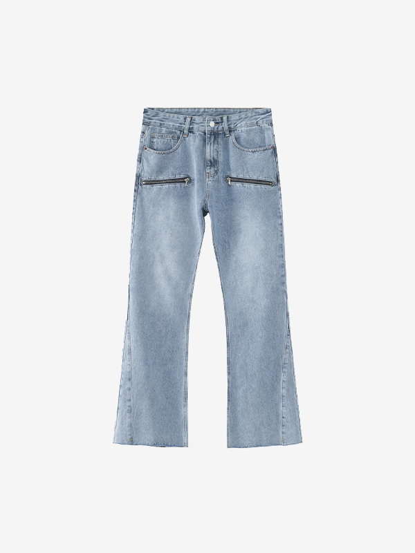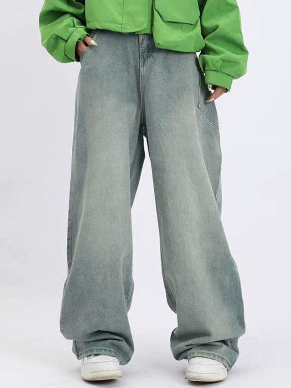 Men’s Washed and Aged Micro Zip Loose Jeans