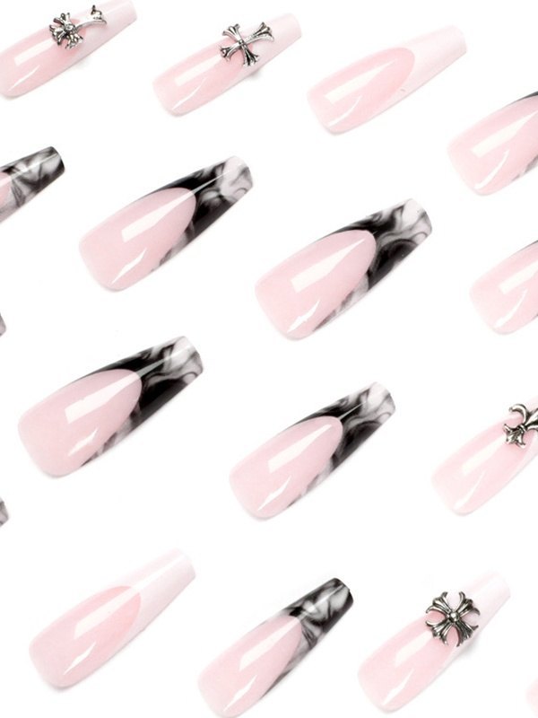 24pcs Cross Embellish Long Press On Nails