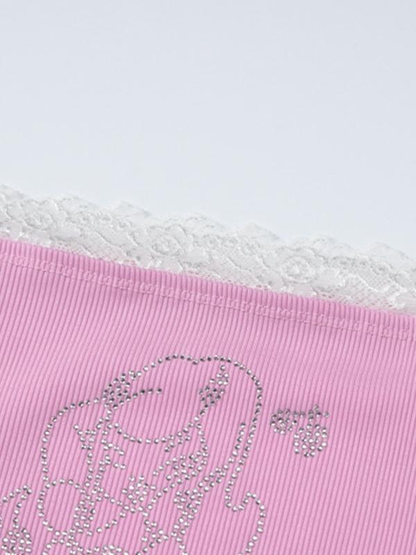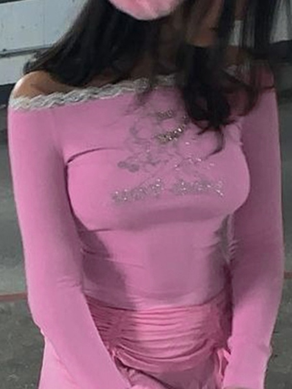 Be the first to review “Cartoon Rhinestone Print Off Shoulder Lace Trim Long Sleeve Tee”