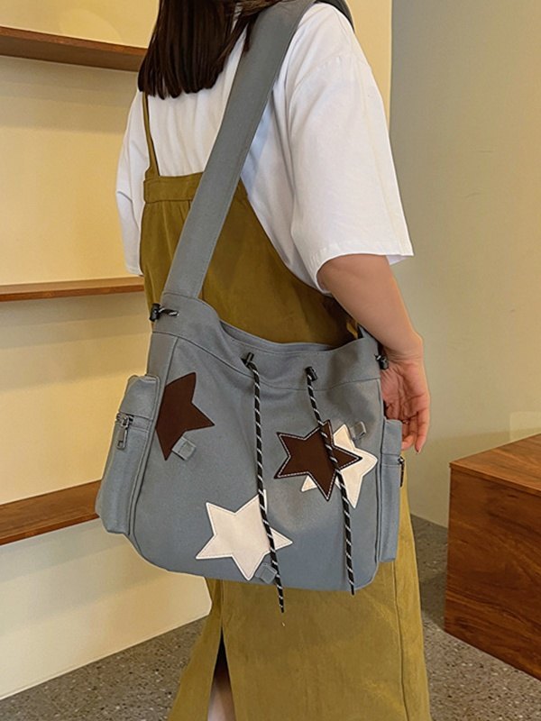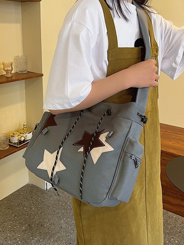 Contrasting Star Print Canvas Bag