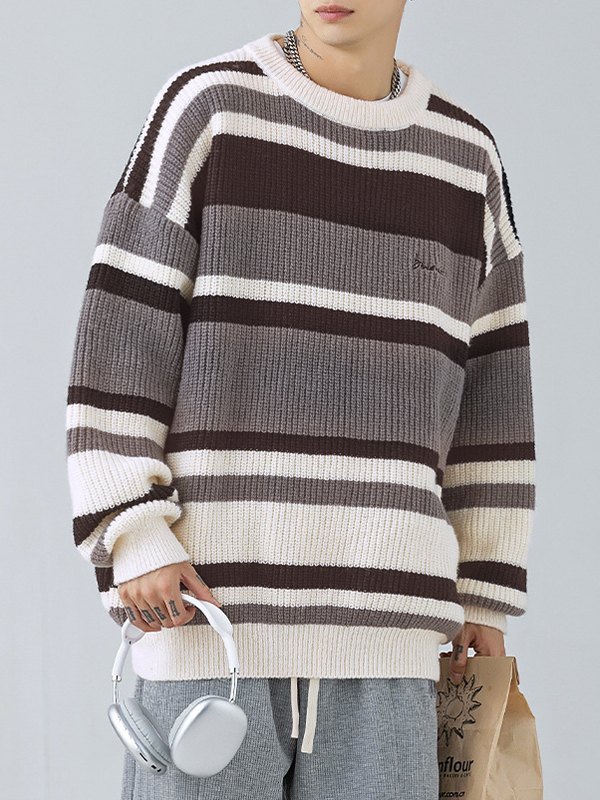 Be the first to review “Men’s Contrast Striped Vintage Pullover Sweater”