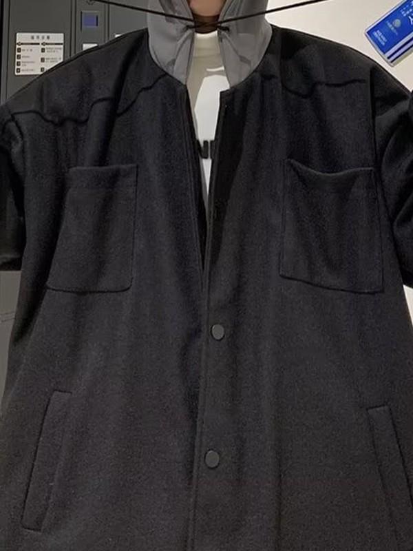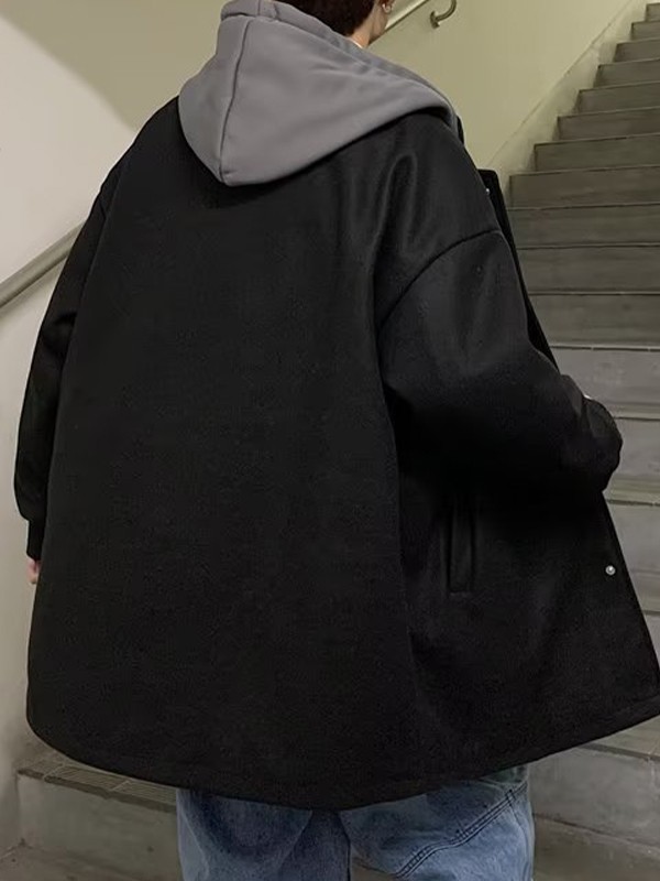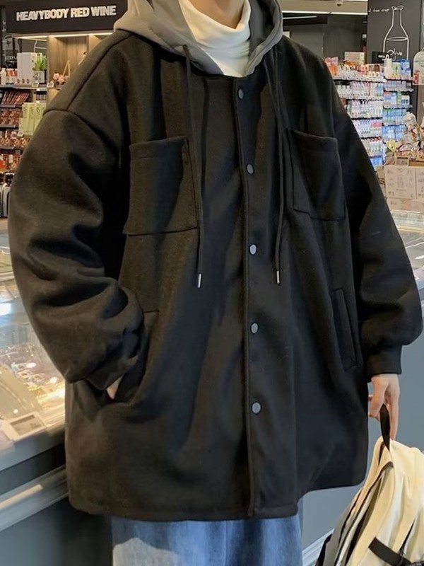 Description: This go-to winter outfit shaped to a relaxed silhouette, it has a cozy hood paneled to the back, features functional pockets at front, and drop shoulders detailing, ended with snap button fasten design.